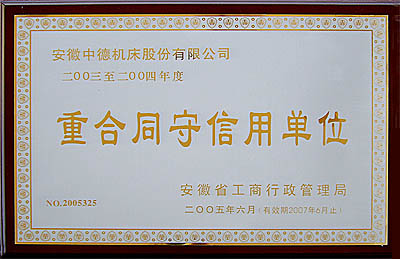 為認真貫徹落實十六大提出的“整頓和規范市場經濟秩序,健全現代市場經濟的社會信用體系”的精神,規范市場經濟秩序,推動社會信用制度建設,培養良好的社會信用環境,樹立誠信為本的社會風尚,表彰我省企業在市場交易中,堅持“守約重信”的經營道德,弘揚先進的企業合同管理方式,倡導誠信理念,服務經濟建設,提升企業信用等級,根據《安徽省重合同守信用單位認定暫行辦法》的規定,組成了以省工商局、省建設廳、省質監局、省國稅、省地稅、省消協和銀行等部門參加的安徽省重合同守信用單位評審委員會,對全省申報2003-2004年度省級“重合同守信用”的單位,依照程序,嚴格評審。現結果已揭曉,我公司為獲些榮譽的企業之一。