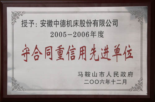 我公司成為馬鞍山市合同信用協(xié)會成立大會的理事單位,同時被市政府授予馬鞍山市2005-2006年度守合同重信用先進單位稱號。
