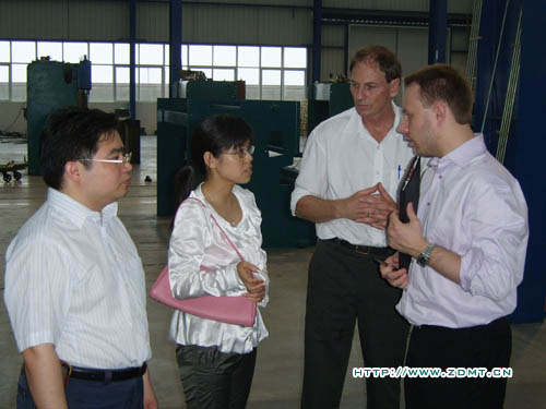 盡管天氣非常炎熱,下午還下起了暴雨,但這絲毫沒有影響他們參觀的熱情!稍作休息后,Peter和Daniel 就迫不及待的隨同公司領(lǐng)導(dǎo)及工作人員來到了我們的大型裝配車間,在這里,他們審視的眼光掃過每一臺(tái)機(jī)器,然后都滿意的點(diǎn)點(diǎn)頭。期間不斷的向隨行的工作人員提問,非常的認(rèn)真,我們的工作人員都耐心的一一解答。